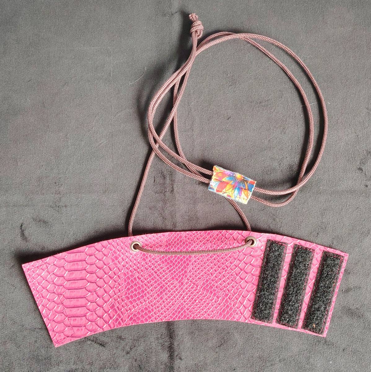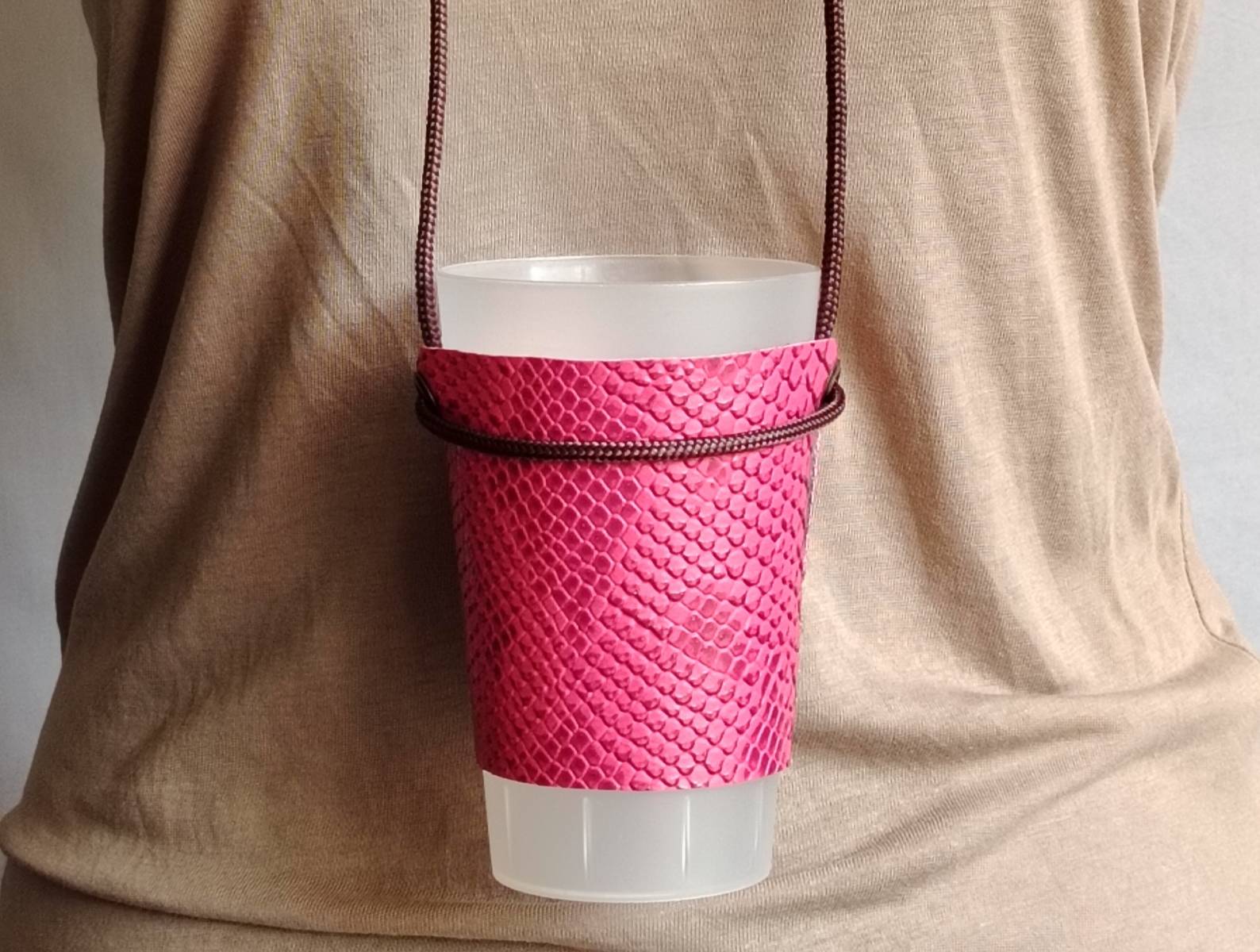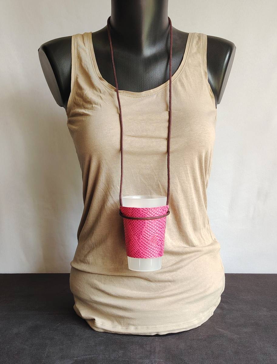Porte gobelet en simili cuir, ajustable pour différentes tailles de verre. Avec cordon. Pour ne plus perdre votre verre dans vos soirées, concerts et festivals et ne plus se poser la fameuse question : "Oukilé" mon verre ?